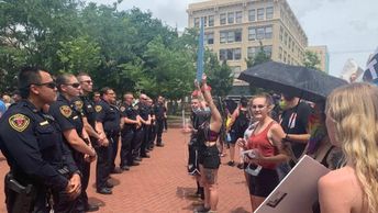 At one point, counterprotesters and members of the Back the Blue rally screamed back and forth at each other. Officers briefly positioned themselves between both groups.